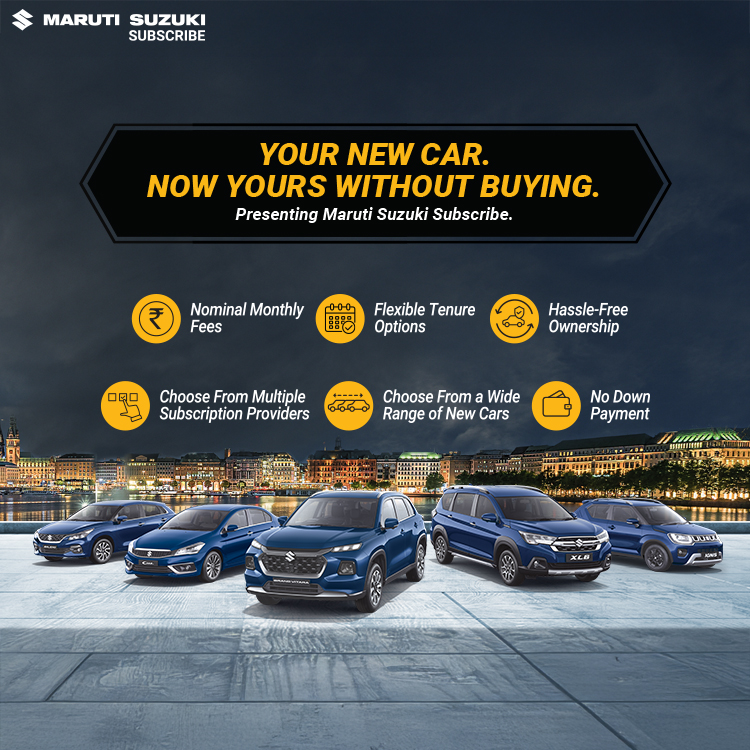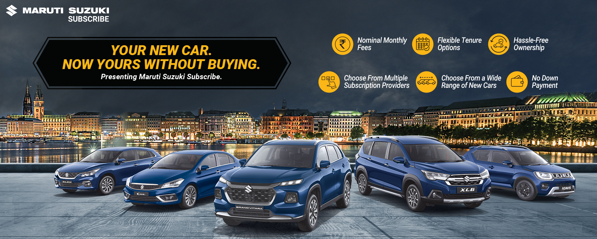 Maruti Suzuki Subscribe enables all customers to enjoy driving their preferred Maruti Suzuki cars without having to deal with all the financial responsibilities that come with owning a car.All you need to do is opt for a monthly subscription plan at a fixed monthly fee, which includes the routine maintenance and insurance costs, and choose a flexible tenure. At Rukmani Motors in, NEXA Bhawarkuan Indore, Indore, all Hatchback, Sedan, SUV, the MUV models line-up includes Baleno, Invicto, EVitara, Jimny, Ciaz, Ignis, Fronx, Grand Vitara, XL6. Here, you will enjoy Maruti Suzuki Subscribe benefits such as: